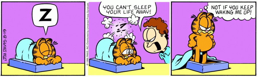 Ты так всю жизнь проспишь! Нет, потому что ты всё время меня будишь.