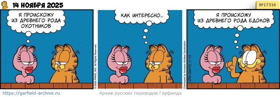 Гарфилд: Как интересно... Я происхожу из древнего рода едоков