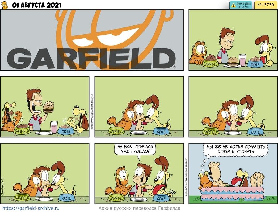 Гарфилд: Мы же не хотим получить спазм и утонуть
