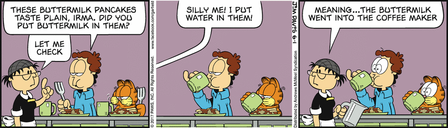 Jon: These buttermilk pancakes taste plain, Irma. Did you put buttermilk in them?