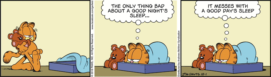 Garfield: The only thing bad about a good night's sleep... It messes with a good day's sleep