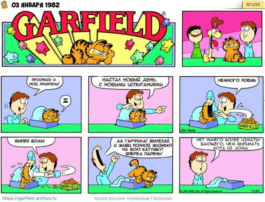Jon: There's a bright new day out there, with new challenges. Have some food. Have some water. YEA, GARFIELD! GET OUT THERE AND LIVE LIFE FOR ALL IT'S WORTH! CHARGE, BOY! There's nothing tougher than kick-starting a cat.