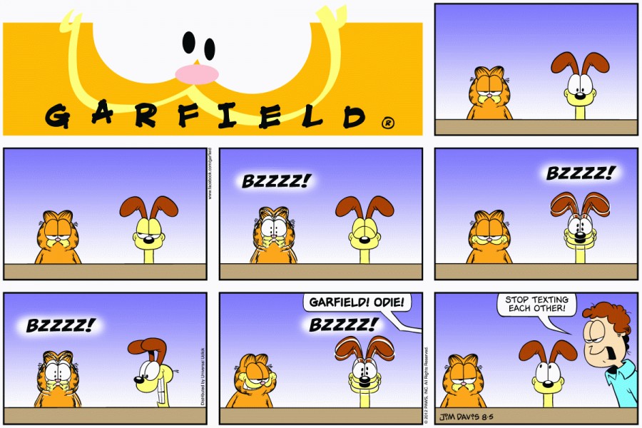 ... ... БЗЗЗЗ! БЗЗЗЗ! БЗЗЗЗ! БЗЗЗЗ! Джон: ГАРФИЛД! ОДИ! Джон: Хватит отправлять друг другу смски!