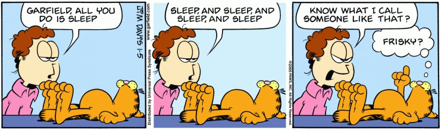 Jon: Garfield, all you do is sleep. Sleep, and sleep, and sleep, and sleep Know what I call someone like that?