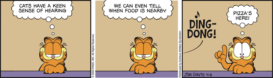 Garfield: Cats have a keen sense of hearing. We can even tell when food is nearby
