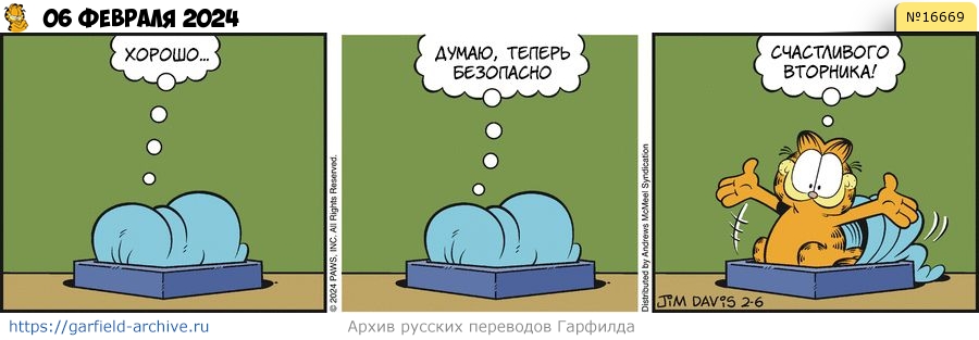 Гарфилд: Хорошо... Думаю, теперь безопасно. Счастливого вторника!