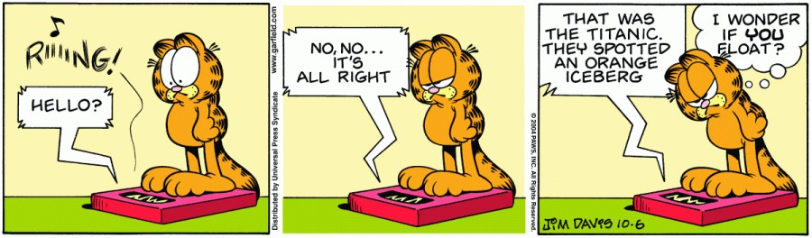 Garfield: I wonder if YOU float?