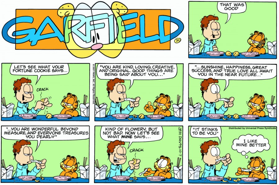 Jon: «You are kind, loving, creative, and original. good things are being said about you...» «...Sunshine, happiness, great success, and true love all await you in the near future...» «...You are wonderful beyond measure and everyone treasures you dearly». Kind of flowery, but not bad. Now let's see what MINE says...