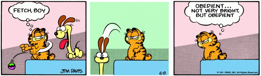 Garfield: Fetch, boy. Obedient... Not very bright, but obedient