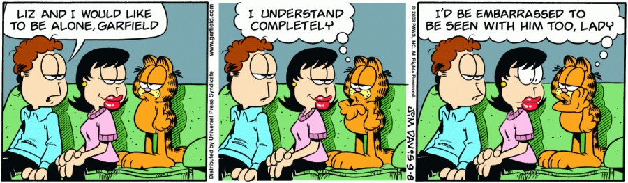 Jon: Liz and I would like to be alone, Garfield.