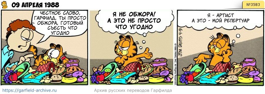 Джон: Честное слово, Гарфилд, ты просто обжора, готовый съесть что угодно