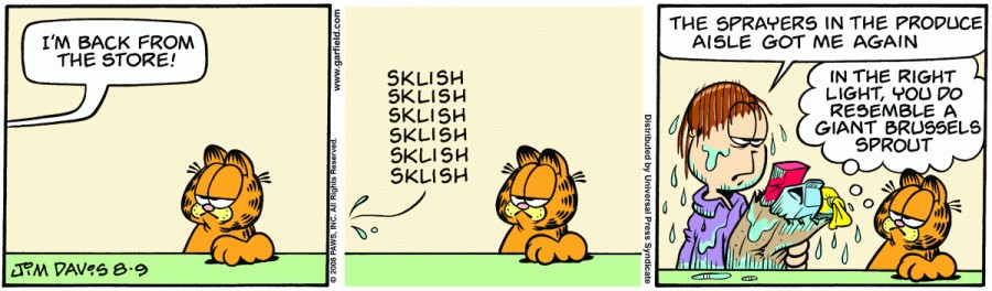 Garfield: In the right light, you do resemble a giant brussels sprout.
