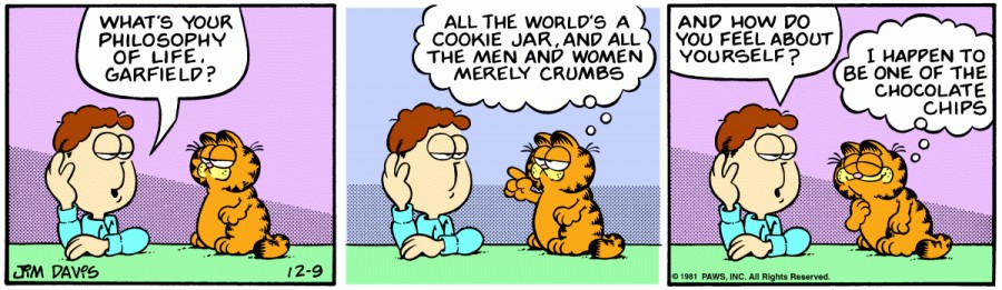 Garfield: All the world's a cookie jar, and all the men and women merely crumbs.