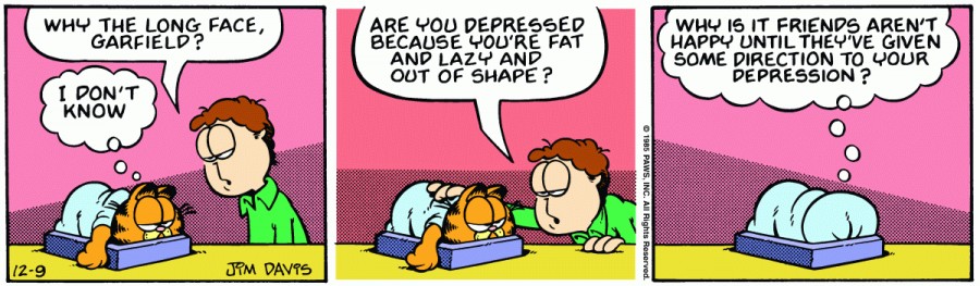 Garfield: Why is it friends aren't happy until they've given some direction to your depression?