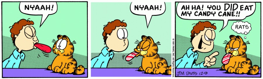Джон: А-ха! ТЫ СЪЕЛ МОЮ КОНФЕТКУ!! Гарфилд:Проклятье.