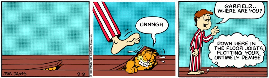Garfield: Down here in the floor joists, plotting your untimely demise.
