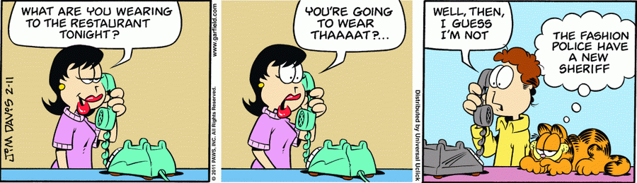 Liz: What are you wearing to the restaurant tonight? You're going to wear thaaaat?...