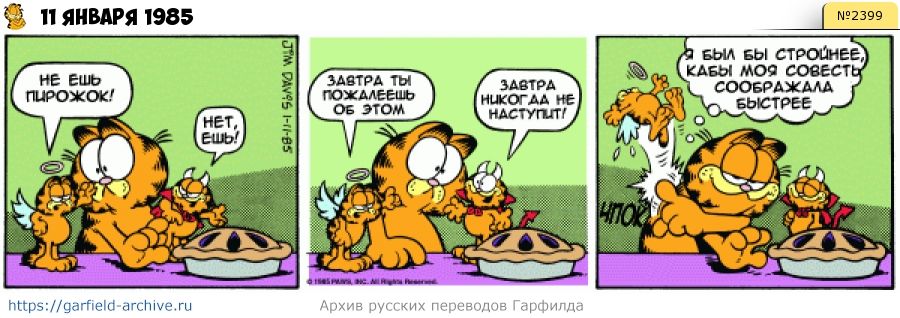 Garfield: I'd be thinner if my conscience were quicker witted.