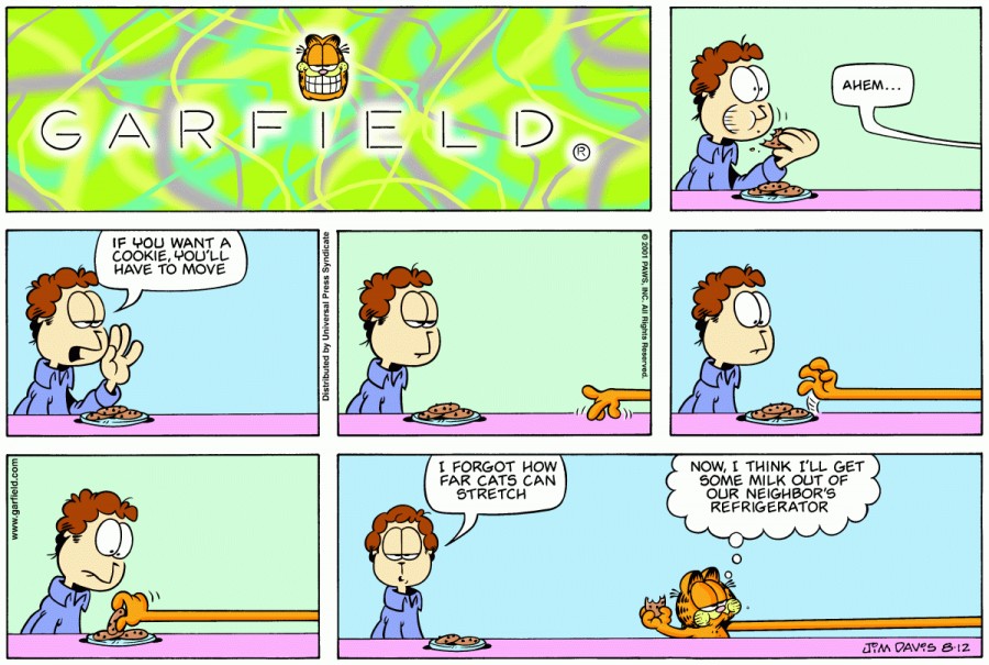 Garfield: Now I think I'll get some milk out of our neighbor's refrigerator