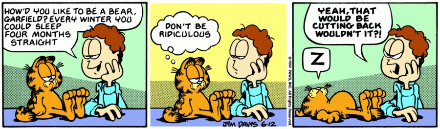 Jon: How'd you like to be a bear, Garfield? Every winter you could sleep four months straight.