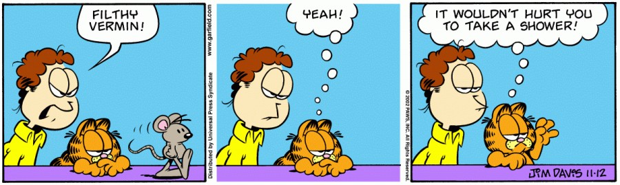 Garfield: Yeah! It wouldn't hurt you to take a shower!