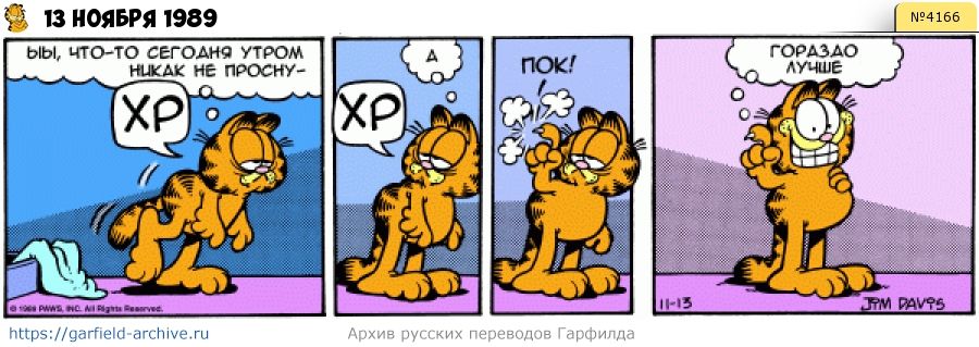 Garfield: Gee, I can't seem to wake up this morn- Z. Oh. Z.