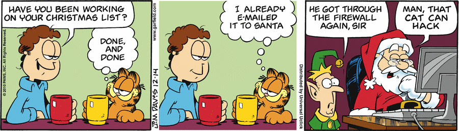 Garfield: Done, and done. I already e-mailed it to Santa.