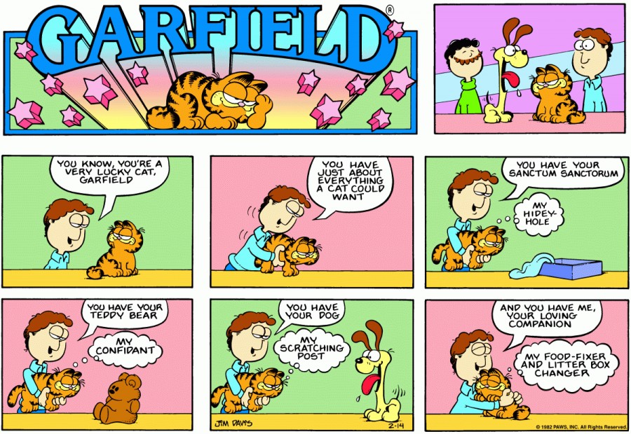Jon: You know, you're a very lucky cat, Garfield. You have just about everything a cat could want. You have your sanctum sanctorum.
