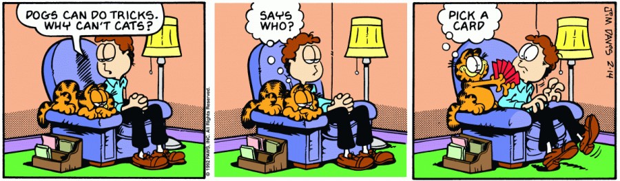 Собаки могут выполнять трюки.Почему коты не могут?Кто сказал?Выбери карту