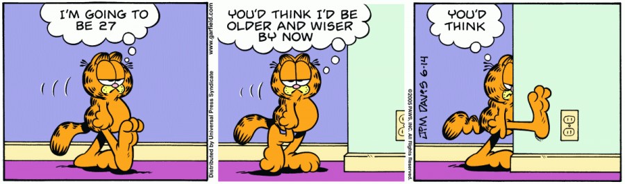 Garfield: I'm going to be 27. You'd think I'd be older and wiser by now. You'd think.