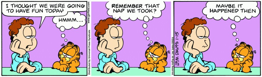 Garfield: Hmmm... Remember that nap we took? Maybe it happened then.