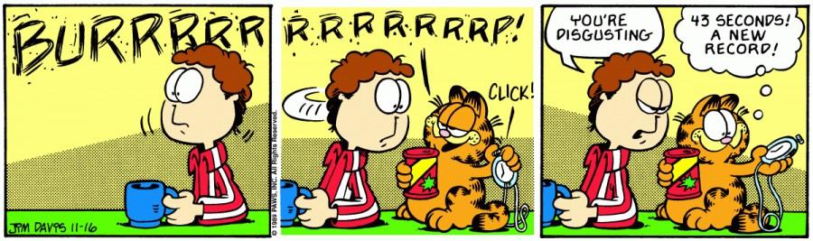 «Рыыыыыыыыг» Джон: Ты отвратителен. Гарфилд:43 секунды! Новый рекорд!