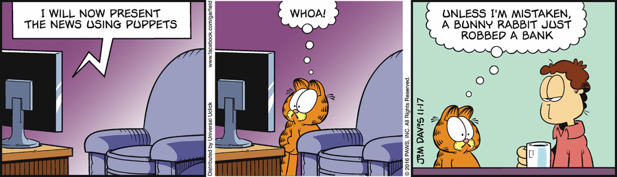 Garfield: Whoa! Unless I'm mistaken, a bunny rabbit just robbed a bank.