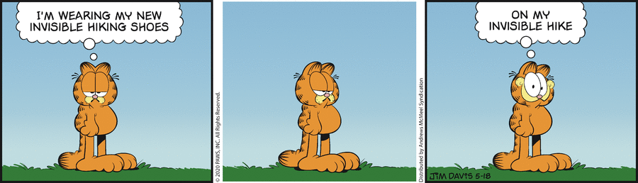 Garfield: I'm wearing my new invisible hiking shoes. On my invisible hike