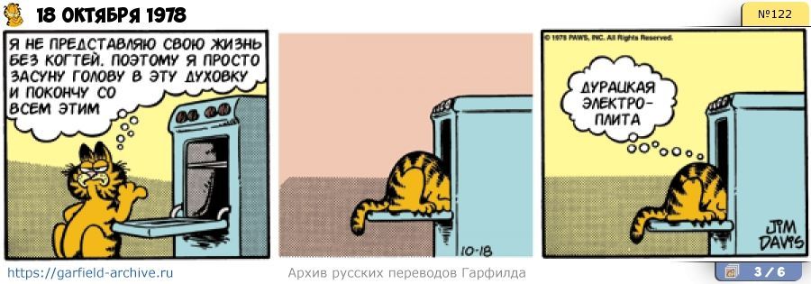 Garfield: I couldn't face life as a declawed person so I'll just stick my head in the oven and end it all. Stupid electric stove