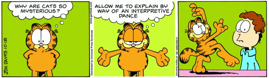 Garfield: Why are cats so mysterious? Allow me to explain by way of an interpretive dance.