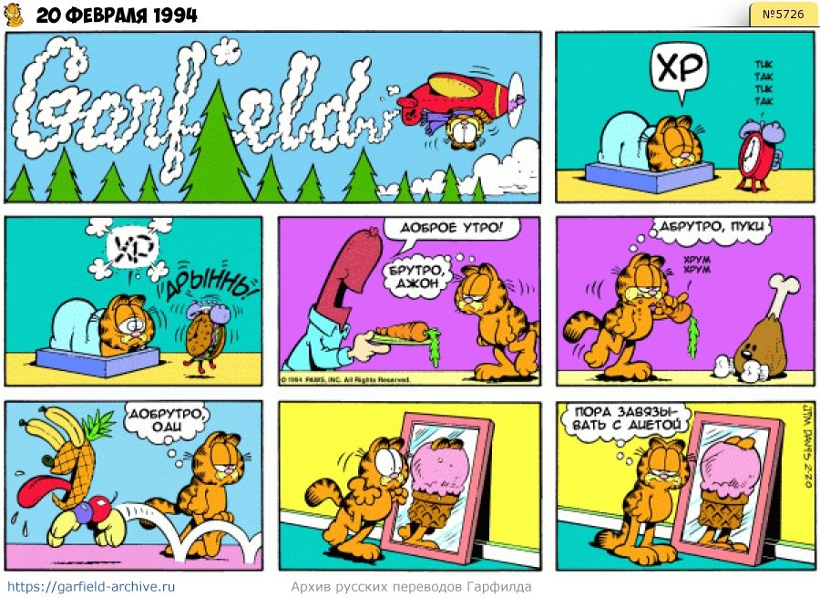 Garfield: Morning, Jon. Morning, Pooky. Morning, Odie. I gotta get off this diet