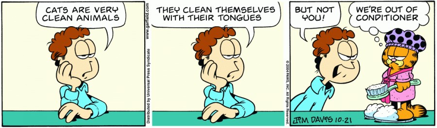 Jon: Cats are very clean animals. They clean themselves with their tongues. But not you!