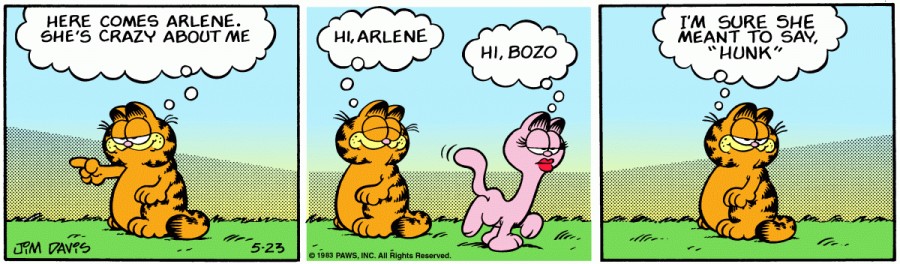 Garfield: Here comes Arlene. She's crazy about me. Hi, Arlene.
