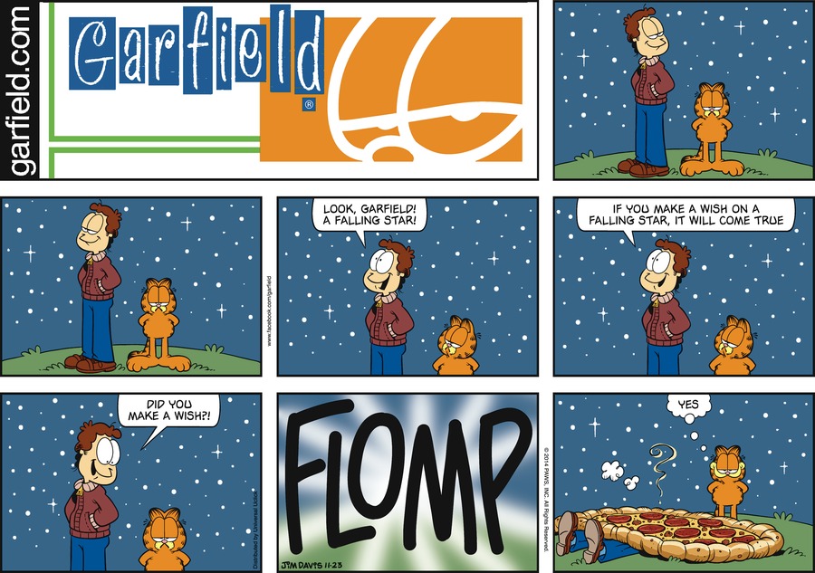 Jon: Look, Garfield! A falling star! If you make a wish on a falling star, it will come true. Did you make a wish?!