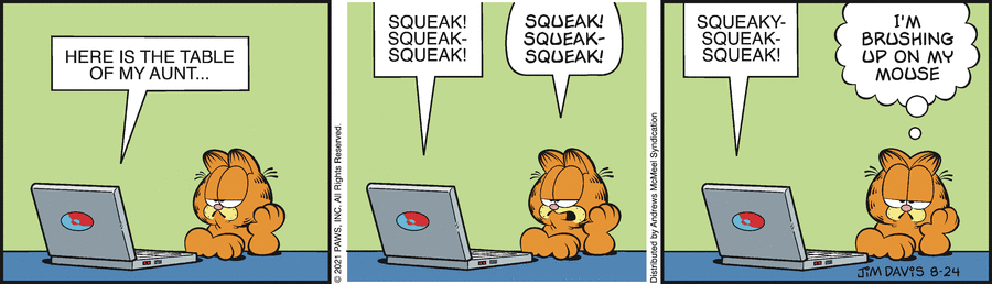 Laptop: Here is the table of my aunt... Squeak! Squeak-squeak!