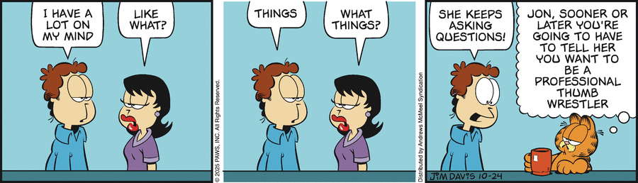 Garfield: Jon, sooner or later you're going to have to tell her you want to be a professional thumb wrestler