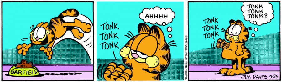 (Немая сцена) Гарфилд: Ааааа (Звук): Тук тук тук Гарфилд: Тук тук тук? (Звук): Тук тук тук
