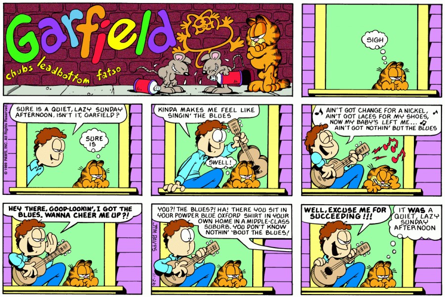 Jon: Sure is a quiet, lazy Sunday afternoon, isn't it, Garfield?