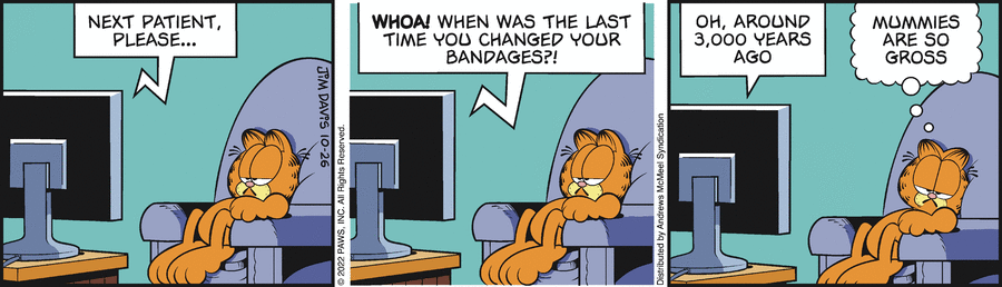TV: Next patient, please... WHOA! When was the last time you changed your bandages?! Oh, around 3,000 years ago
