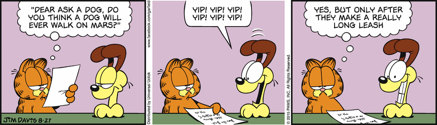 Garfield: «Dear ask a dog, do you think a dog will ever walk on Mars?»