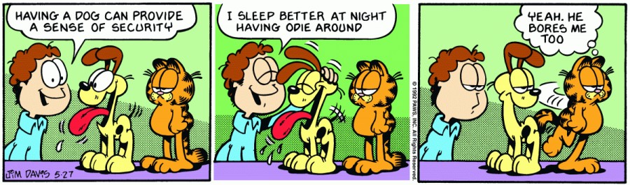 Jon: Having a dog can provide a sense of security. I sleep better at night having Odie around.