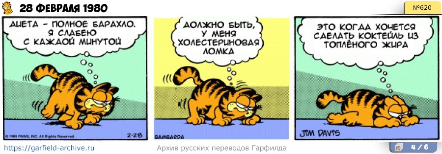 Garfield: This diet's a real bummer. I'm getting weaker by the minute. I must be going into cholesterol withdrawal. That's when you have the urge to make a highball out of bacon grease.