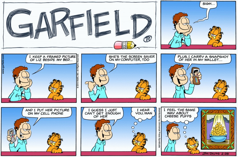 Garfield: I hear you, man. I feel the same way about cheese puffs.