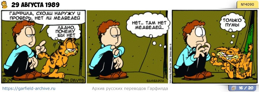 Garfield: Sure, why not? No...there are no bears out here... Just pumas.
